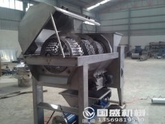 果蔬破碎机在生产过程中处于螺旋压榨机之前的一道工序,当螺旋压榨机对有些物料的脱水效